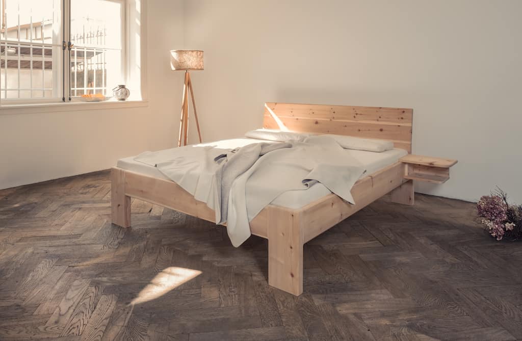 ohne Kopfteil, mit Kopfteil, mit Rückwand (Bild: TRIBULAUN mit Rückwand in Zirbe)