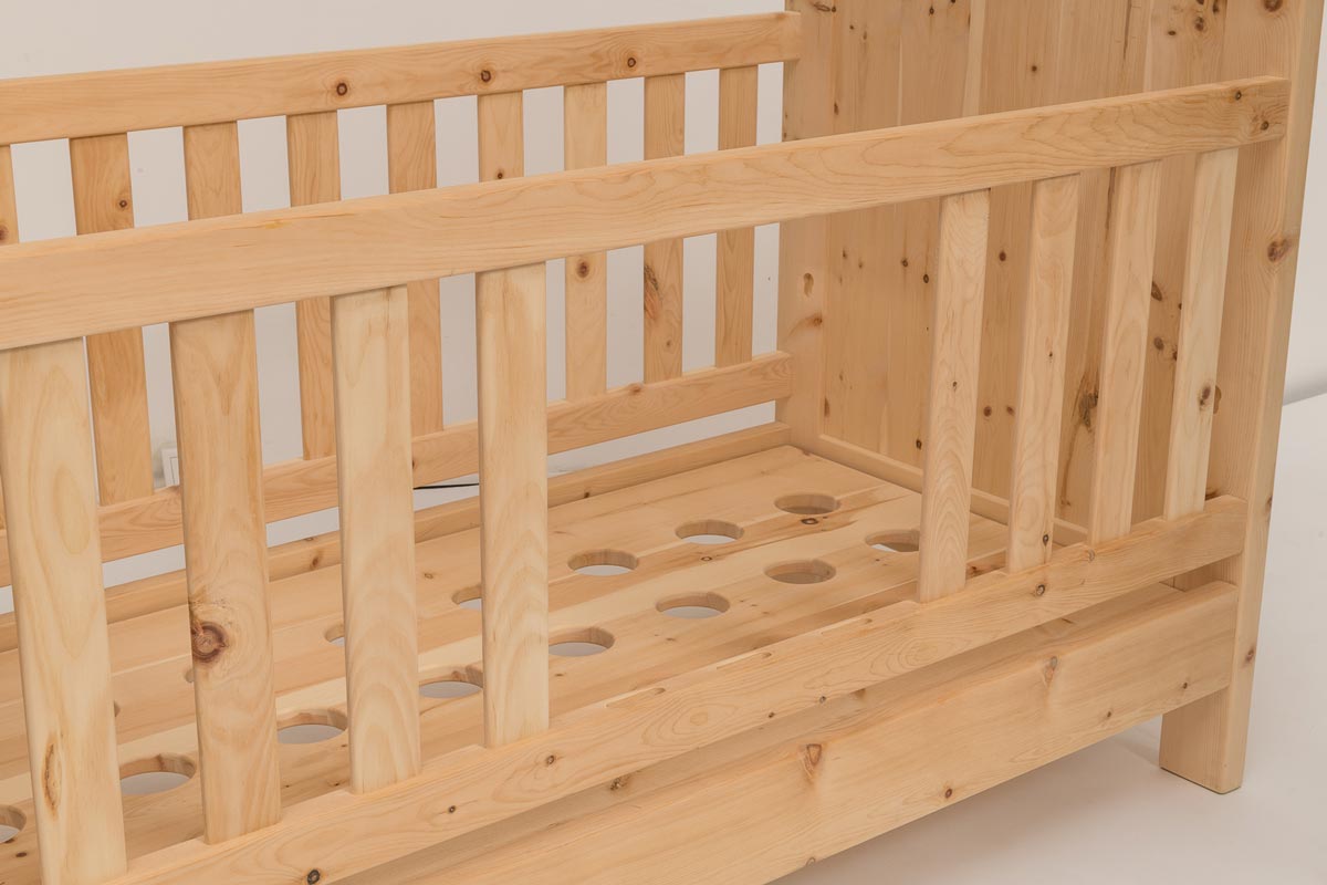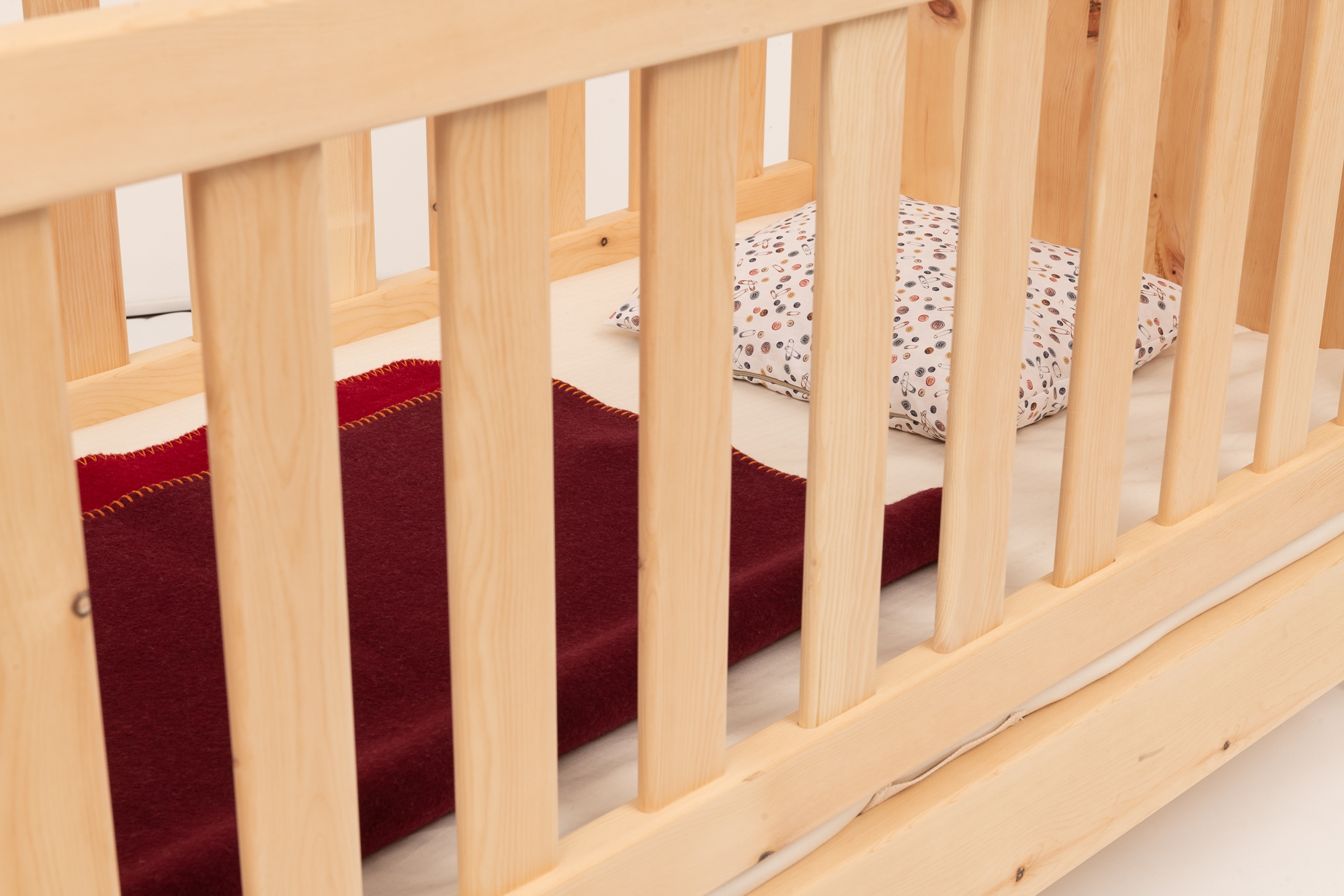Der Schlaf unserer Kleinsten liegt uns am Herzen. Im metallfreien Tiroler Gitterbett als Komplettset mit hochwertiger Naturmatratze (Kokus/Naturkautschuk), waschbarer Baumwollauflage, Bio-Tencel-Decke und Bio-Tencel-Kissen gelingt das besonders gut. Wegen der Verstellbarkeit der Bodenhöhe und der Seitenteile kann man aus dem Gitterbett später ein Kinderbett oder eine Kinderbank machen. Aus der Transportkiste wird ein schönes Regal oder eine Spielzeugkiste.
