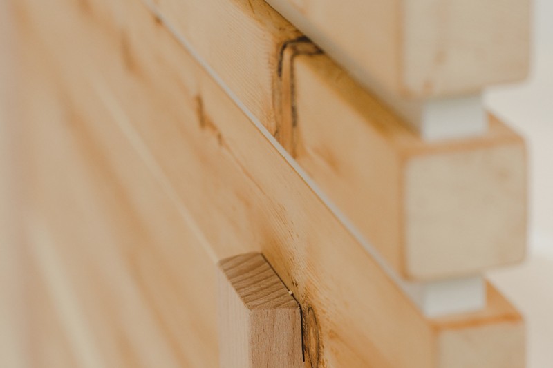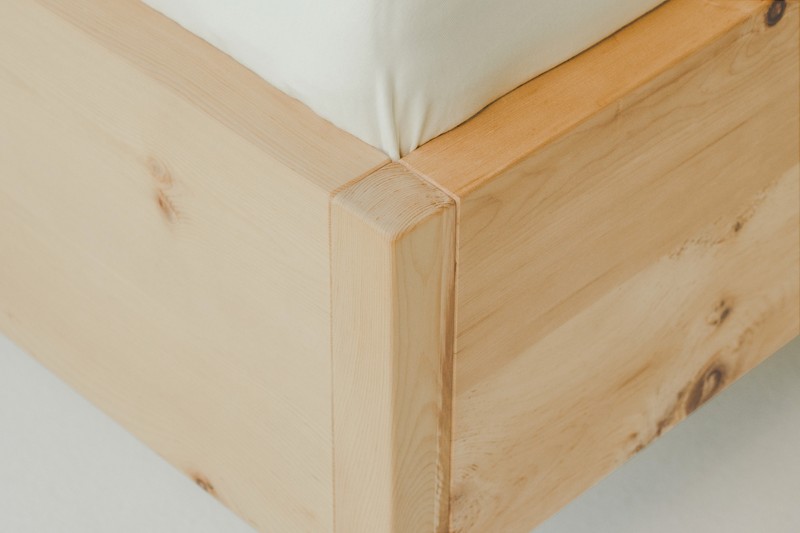 Wir verwenden als metallfreie Verbindung die bewährte Graddübelverbindung mit Hartholz. Diese ist äußerst einfach zum Zusammenstecken beim Auf- und Abbau und sehr robust. Die Verbindung wird vorab geseift, damit es im Zweifel  kein Knarren geben kann. Auch das Zerlegen eines Bettrahmen ist bei dieser Verbindung kein Problem und rasch möglich.
